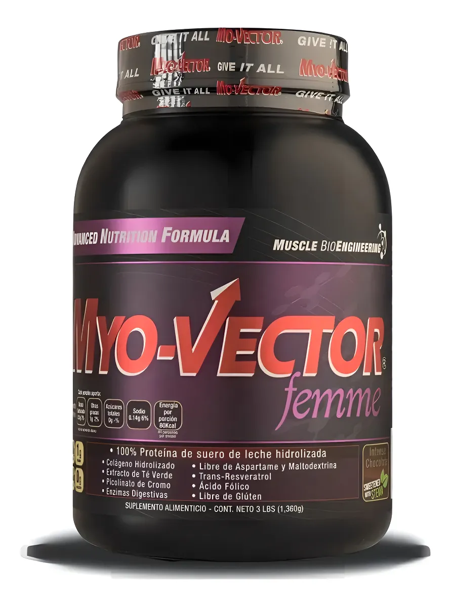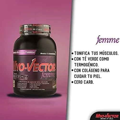 Ideada especialmente para ti Mujer, un cuerpo delgado con tono muscular es lo que esta proteína persigue a cada toma. Myo-Vector Femme es la proteína con mejor sabor del mercado, ya que sus componentes son totalmente naturales y sus sabores son de extracto natural de fruta.